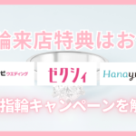 結婚情報サイト「ハナユメ」では指輪キャンペーンを行なっています。来店予約・購入すると電子マネーをもらうことができるお得なキャンペーン。